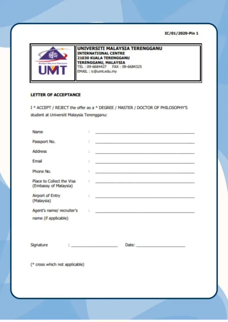 Universiti Malaysia Terengganu (UMT) offers an International Agent Recruitment Incentive program to recognize and reward agents who successfully assist in recruiting international students.