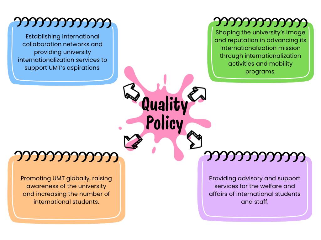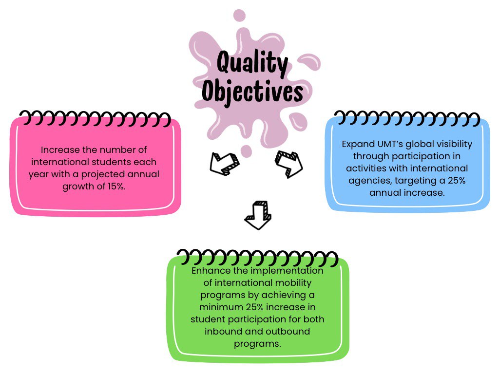 The International Centre is committed to enhancing UMT’s global visibility through collaboration and effective services to meet the needs of stakeholders and clients, in the line with UMT’s vision and mission, by: